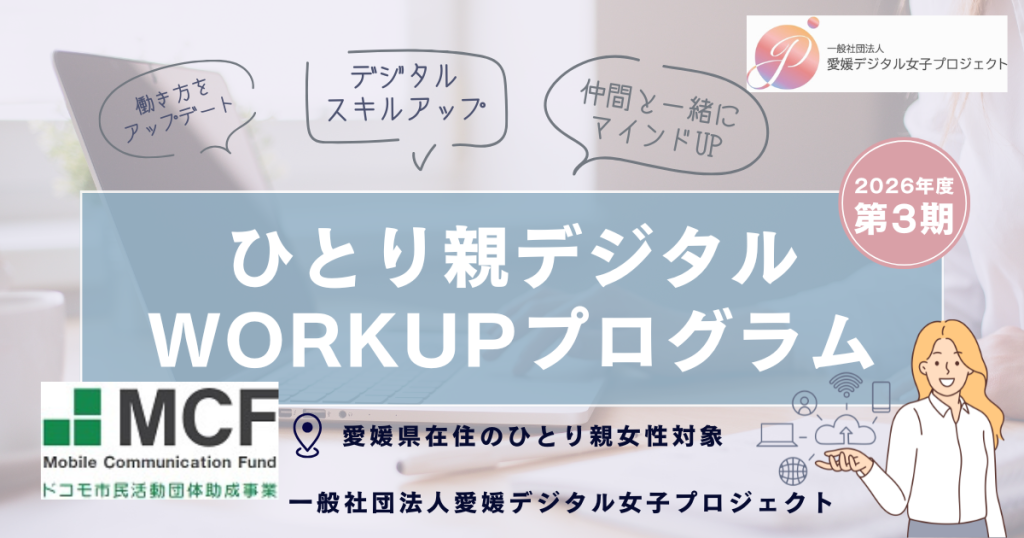 一般社団法人愛媛デジタル女子プロジェクトが愛媛県「令和7年度女性人材デジタルスキル習得支援事業」を受託いたしました。